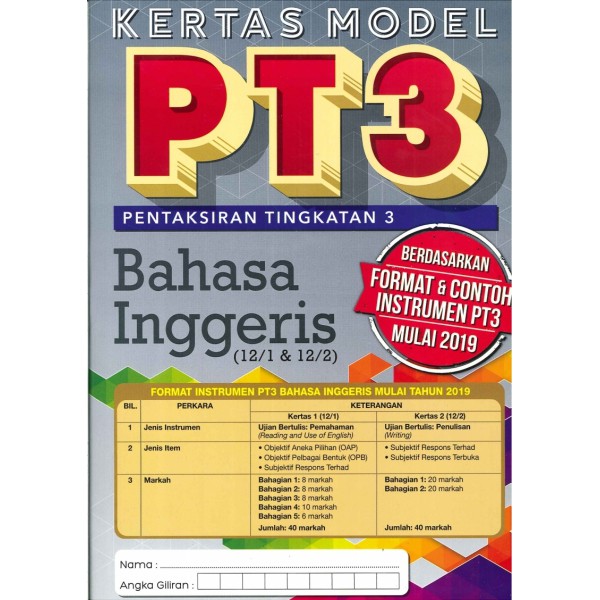 Kertas Model Pt3 Bahasa Inggeris (12/1 & 12/2) 2019 via shopee.com.my